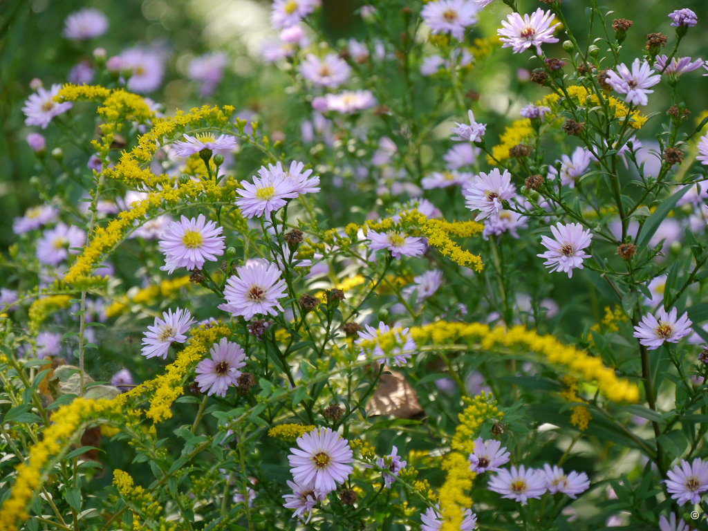 Cortia wallichiana, Himalaya Silge – Solidago rugosa ‘Fireworks’, Goldrute – Symphyotrichum (Syn. Aster) novae-angliae ‘Rudelsburg’, Aster