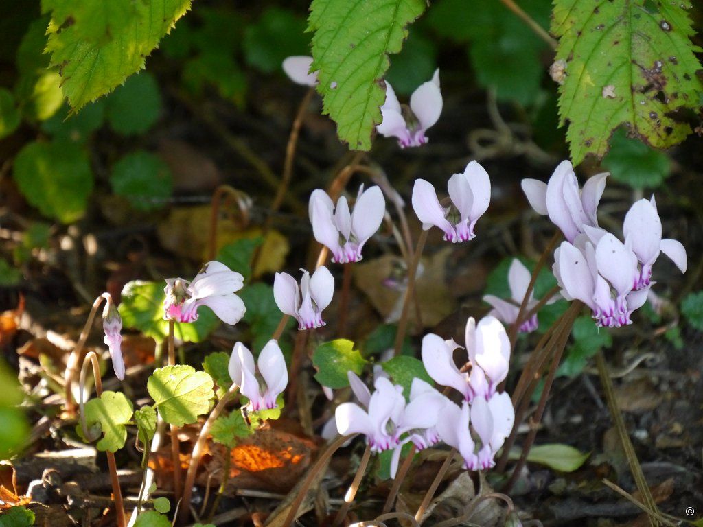 Inge lässt ihren Garten durchblühen. Nach den frühblühenden Geophyten und Stinsenpflanzen beginnt die Gehölzblüte der Obstbäume und Rhododendren. Schlüsselblumen, Blutströpfchen, Wiesenschaumkraut, Schachbrettblumen, Kuckucksnelken und Margeriten, die alle zu ihren Lieblingspflanzen zählen, schließen sich nach und nach an. Die Ramblerrosen, Taglilien und Storchschnäbel blühen im Sommer auf. Bei meinem Besuch sind es die Astern, Herbstzeitlosen, Herbst-Alpenveilchen und vor allem die Gräser, die Furore machen.