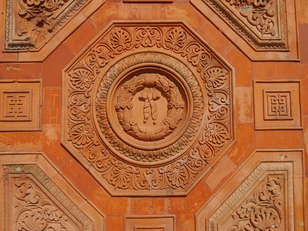 Die dichtbesiedelte Stadt Stuttgart ist die Siebtgrößte in Deutschland und Sitz der Baden-Württembergischen Regierung. Es gibt hier zahlreiche Parks, die als Grüngürtel durch die Innenstadt mäandern. Einen davon, die Stuttgarter Wilhelma, mit einem Ausmaß von 30 ha, möchte ich heute gerne mit meinen Freunden, die aus der Nähe Bambergs anreisen, erkunden. Schon beim Aussteigen aus der U-Bahn erkennen wir den Eingangspavillon und laufen einige Schritte an der historischen Terrakottawand mit den reliefartigen Terrakottaplatten entlang.