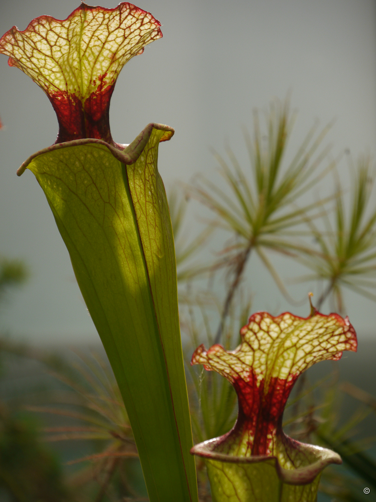 Afrikanische Zwergglanzgans, Nettapus auritus – Sarracenia x moorei – Wegekuckuck, Geococcyx californianus