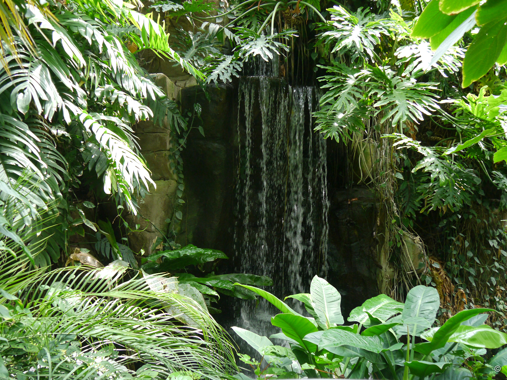 Ein mehrere Meter in die Tiefe fallende Wasserfall und die authentische Bepflanzung mit Urwaldcharakter begeistern mich restlos. 2000 Pflanzen in 350 Arten zeigen einen typischen Bergwald am Amazonas. Für die sich frei im Haus bewegenden Pfeilgiftfrösche und Brillenblattnasen, sind diese Pflanzen überlebenswichtig. Von den zahlreichen Primaten, Fledermäusen, Vögeln, Reptilien und Amphibien sehe ich lediglich zwei Schildkröten durch das Wasser gleiten. Es ist Mittag, zu heiß für Aktionen, Siesta ist angesagt im Urwald.