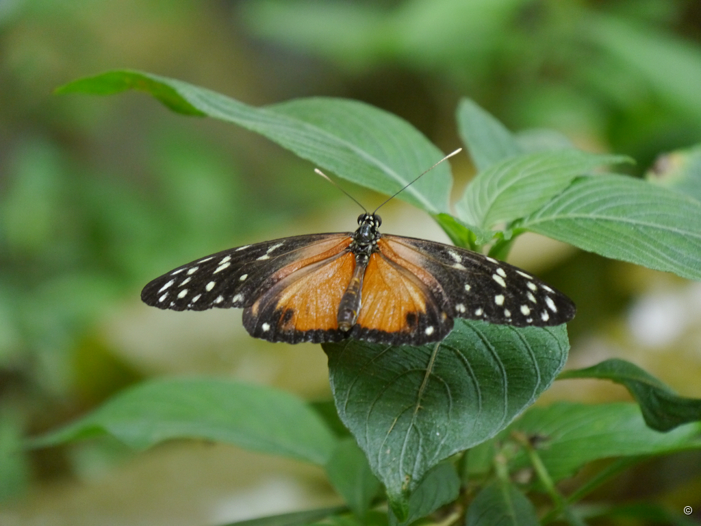 Stuttgart ist ja in der Regel ein Hitzekessel, aber wir haben Glück. Sehr warm ist es schon, aber es geht ständig ein angenehmes Lüftchen. Trotzdem möchte ich nach dem Amazonienhaus gleich in das nächste Gebäude, ich bin neugierig. Wir landen im Insektarium, das aus zwei Räumen besteht, welche durch die Schmetterlingshalle miteinander verbunden sind. Spinnen, Käfer, Schaben, Bienen und Ameisen schaue ich mir lieber in meinem Garten an. Die Skorpione und Pfeilschwanzkrebse verkneife ich mir und gehe schnurstracks in den Mittelteil zu den exotischen Schmetterlingen. Ungewöhnlich ist, dass sie hier nicht allein leben.