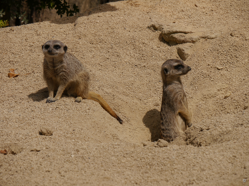 Besonders gut gefällt mir das Grevyzebra, es hat eine ganz besonders feine Schwarzweiß-Zeichnung, die ihm tatsächlich eine “edle Note” verleiht. Nicht ganz so modebewusst sind meine Freunde, die Erdmännchen. Mit ihrer lustigen Art und ihrer Sozialkompetenz sammeln sie bei vielen Zoobesuchern Sympathiepunkte. Den Serval, trotz seiner beachtlichen Größe gehört er nicht zu den Großkatzen, sondern ist eine Kleinkatze, so wie unsere Hauskatzen auch, den ficht das Getue rund um sein Gehege nicht an, Siesta!