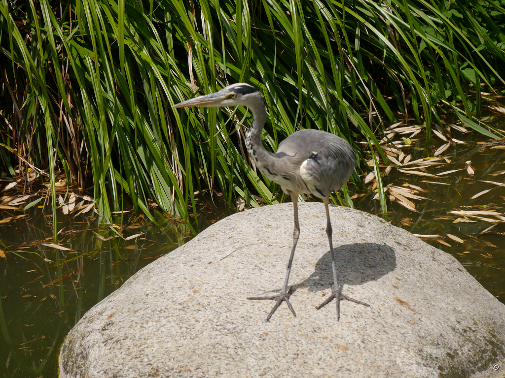 Immer wieder fallen mir bei unserem Rundgang freilebende Tiere auf, heimische Gehölze und Wildblumenwiesen, dazu sogenannte “Wilde Ecken”. Letztere bestehen aus wertvollen Wildstauden, die Insekten und Kleinsäugern als Versteck, aber auch als Nahrung dienen. Als ich mehrere Steinhaufen entdecke, mache ich mich schlau, sie dienen den Mauereidechsen, die hier in der Wilhelma leben, als Unterschlupf. Offenbar wird versucht, Aspekte einzubringen, die auch der Natur vor Ort gerecht wird. Viele Wildtiere sind in die Wilhelma “eingezogen”. Auf der Damaszenerhalle nisten seit langem Weißstörche. Die Graureiherkolonie brütet in den Bäumen nahe des Flamingo-Teichs. Rotfüchse und Feldhasen wanderten aus dem Rosensteinpark ein. Überwinterungshilfen für Fledermäuse, Nistkästen für Vögel und Schmetterlingswiesen werden immer häufiger angenommen.