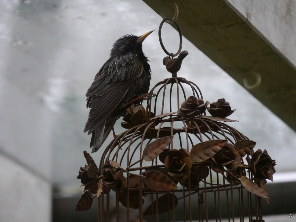 Gerade hat mich die Tatsache noch amüsiert, dass die Stare, die ja Zugvögel sind, sofort geschnallt haben, dass sich das Futterhaus jetzt außerhalb der Terrasse befindet, während die Amseln und Spatzen, die täglich winters wie sommers bei mir zu Gast sind, immer wieder den Terrassenboden nach Körnern und Mehlwürmern absuchen.